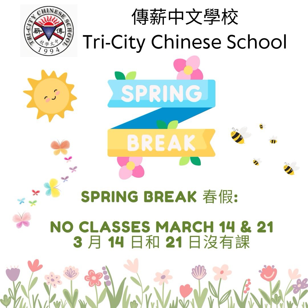 請注意,因為 春假,學校將於 3 月 14 日(星期六) 與 3 月 21 日(星期六) 停課一天。☀️We wish everyone a fun, safe, and relaxing break!
